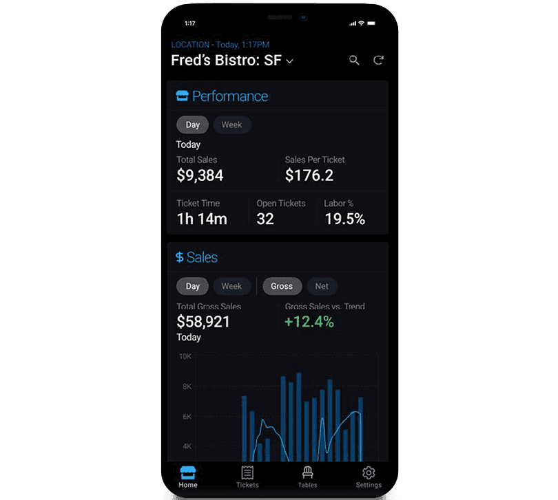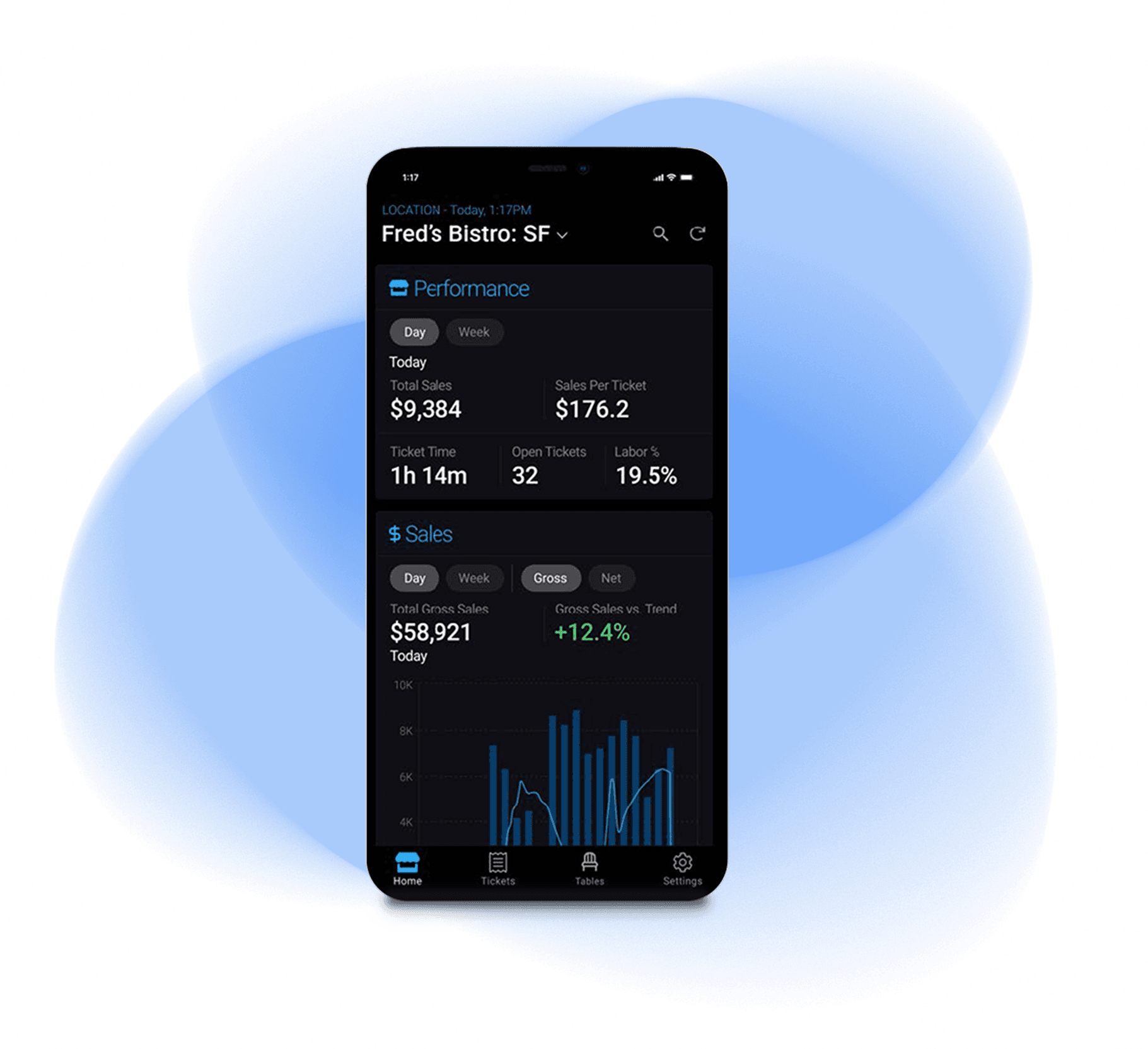 - View staff performance, including hours, sales, tips, ticket time, and more