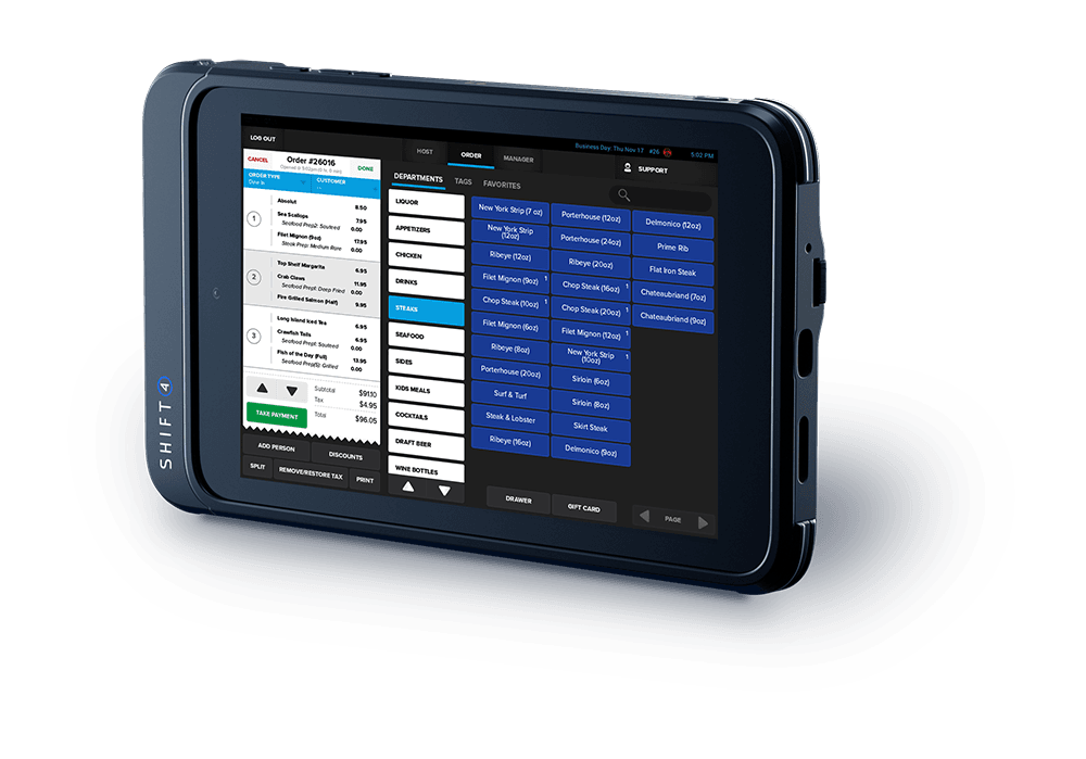 Manage the entire order process in the palm of your hand. Place orders tableside, reorder items or add items through the meal, split checks, and more.