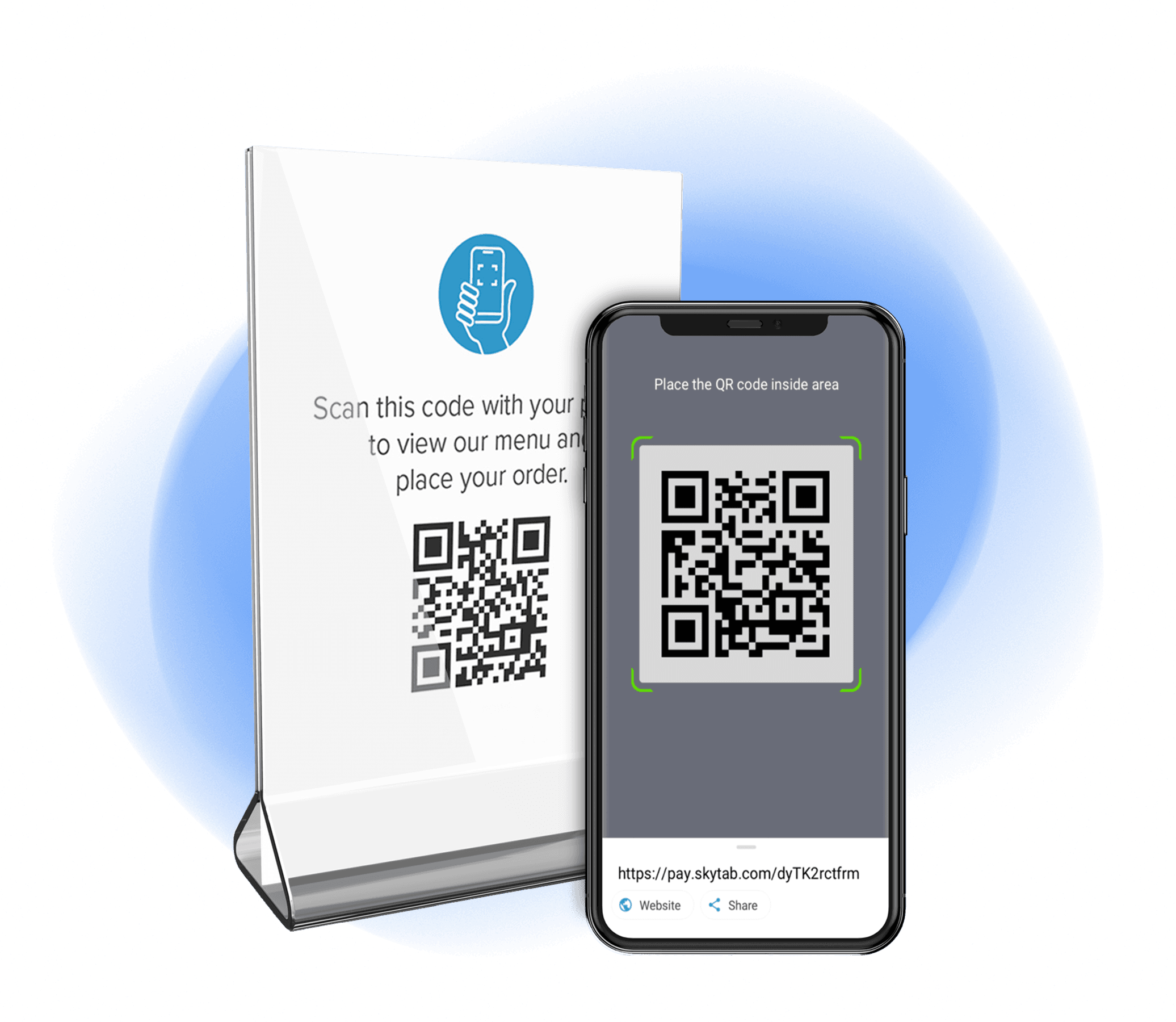 • Display a unique SkyTab-provided QR code at the table